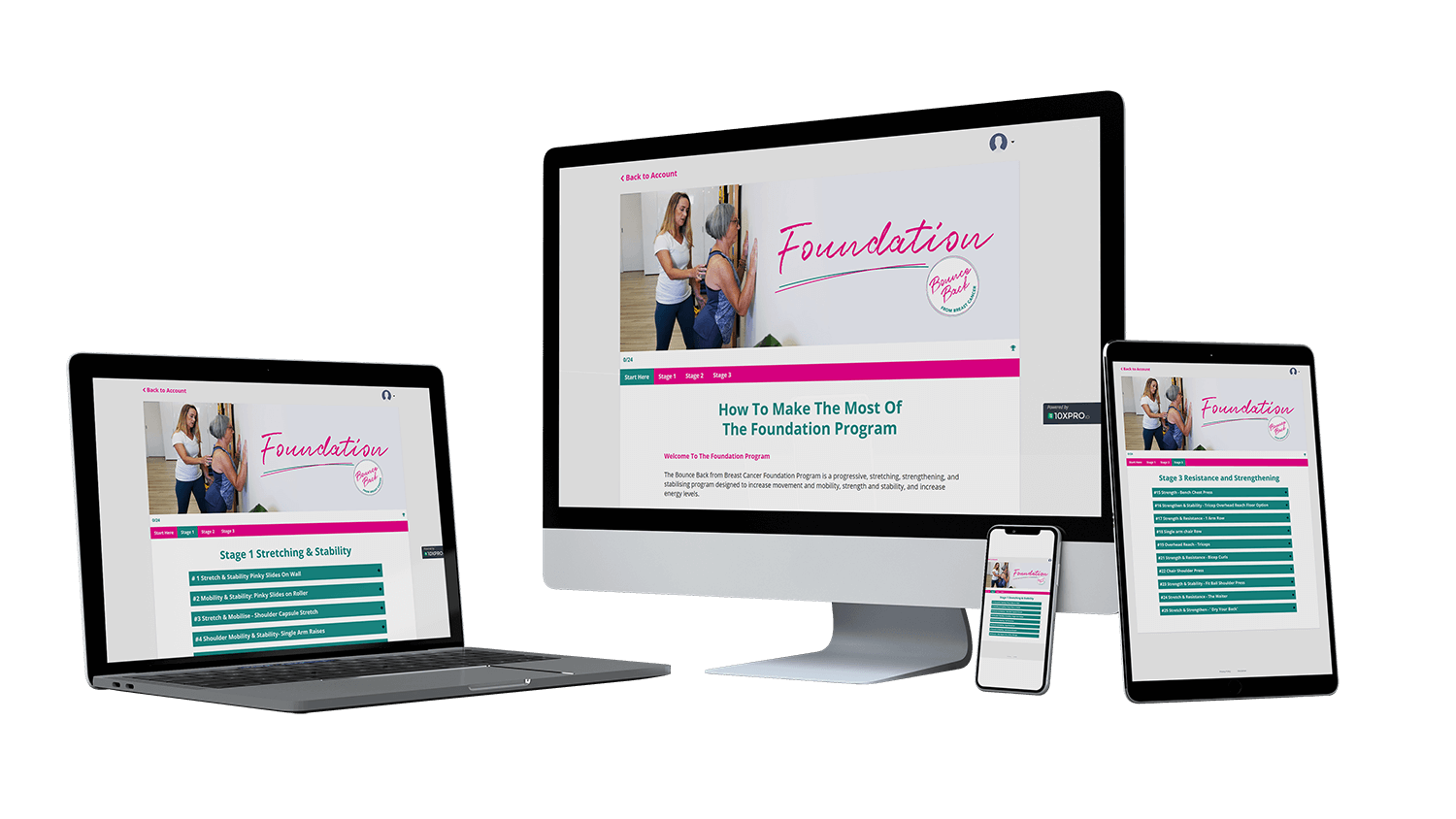 After working with countless women in her clinic, Kate designed this 24-video exercise and rehabilitation online program based on the simple goal of helping more women bounce back from breast cancer, faster.